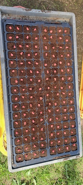 今日は約20000個のタネを播きました。一つ一つポットに丁寧に入れていきます。